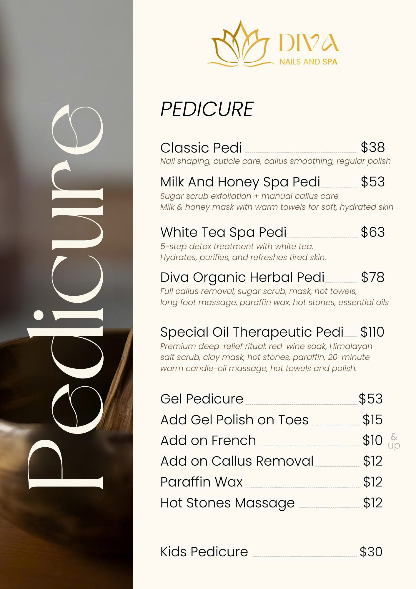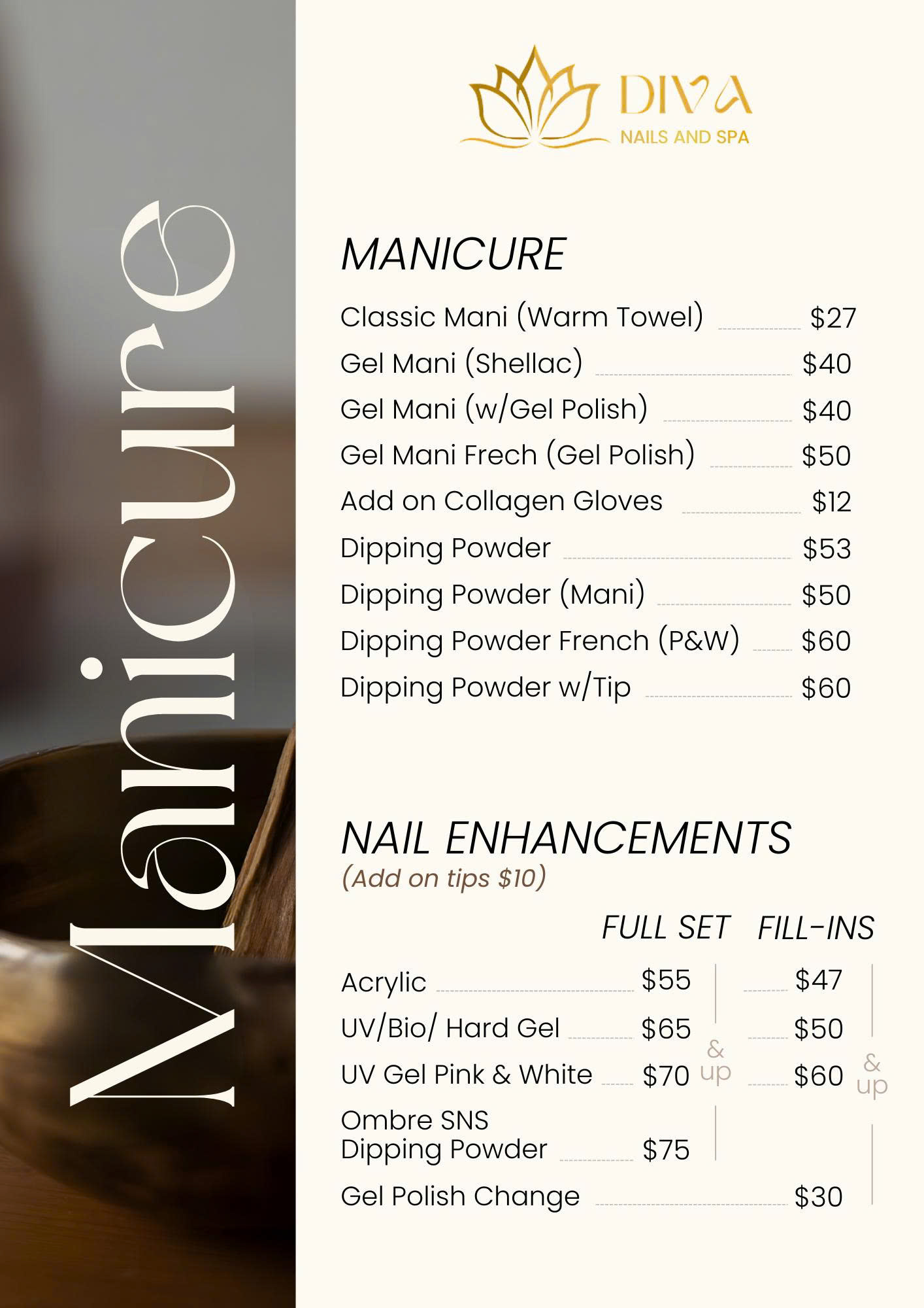 At Diva Nails & Spa, we offer a thoughtfully curated range of beauty treatments, from expert nail care to calming skincare and gentle waxing. Every service is delivered with professionalism, care, and attention to detail—designed to help you relax, recharge, and leave feeling polished and confident.
